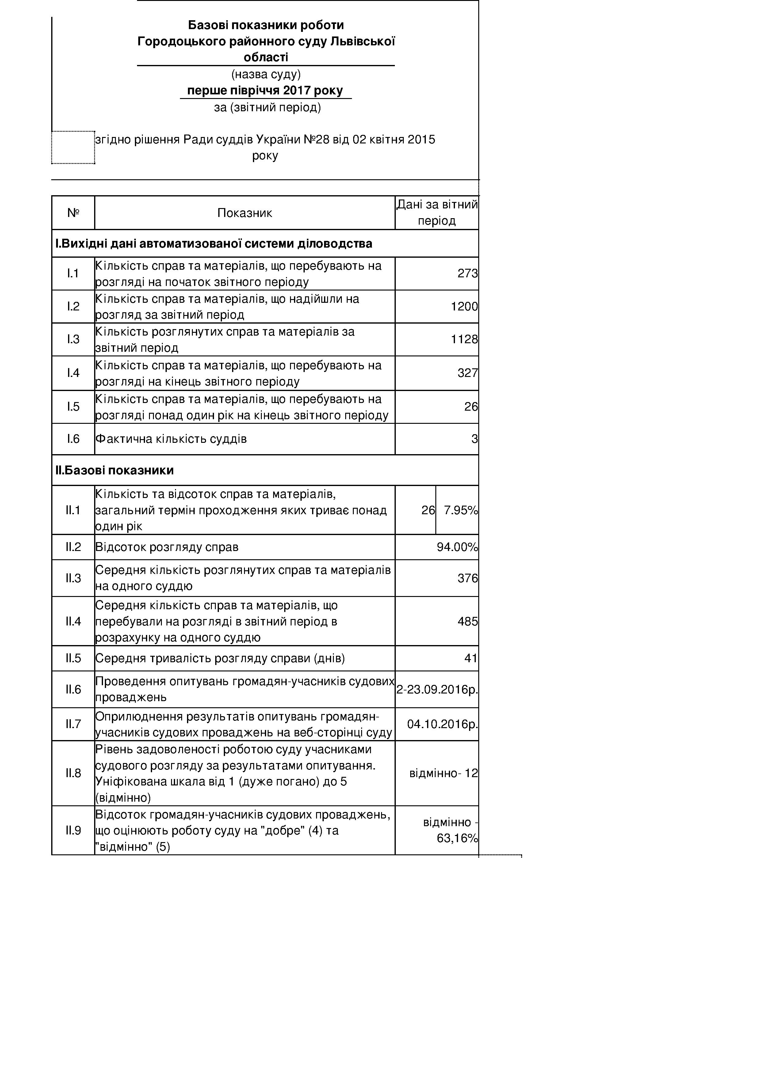 Базові показники ефективності діяльності Городоцького районного суду Львівської області за 2017 р.