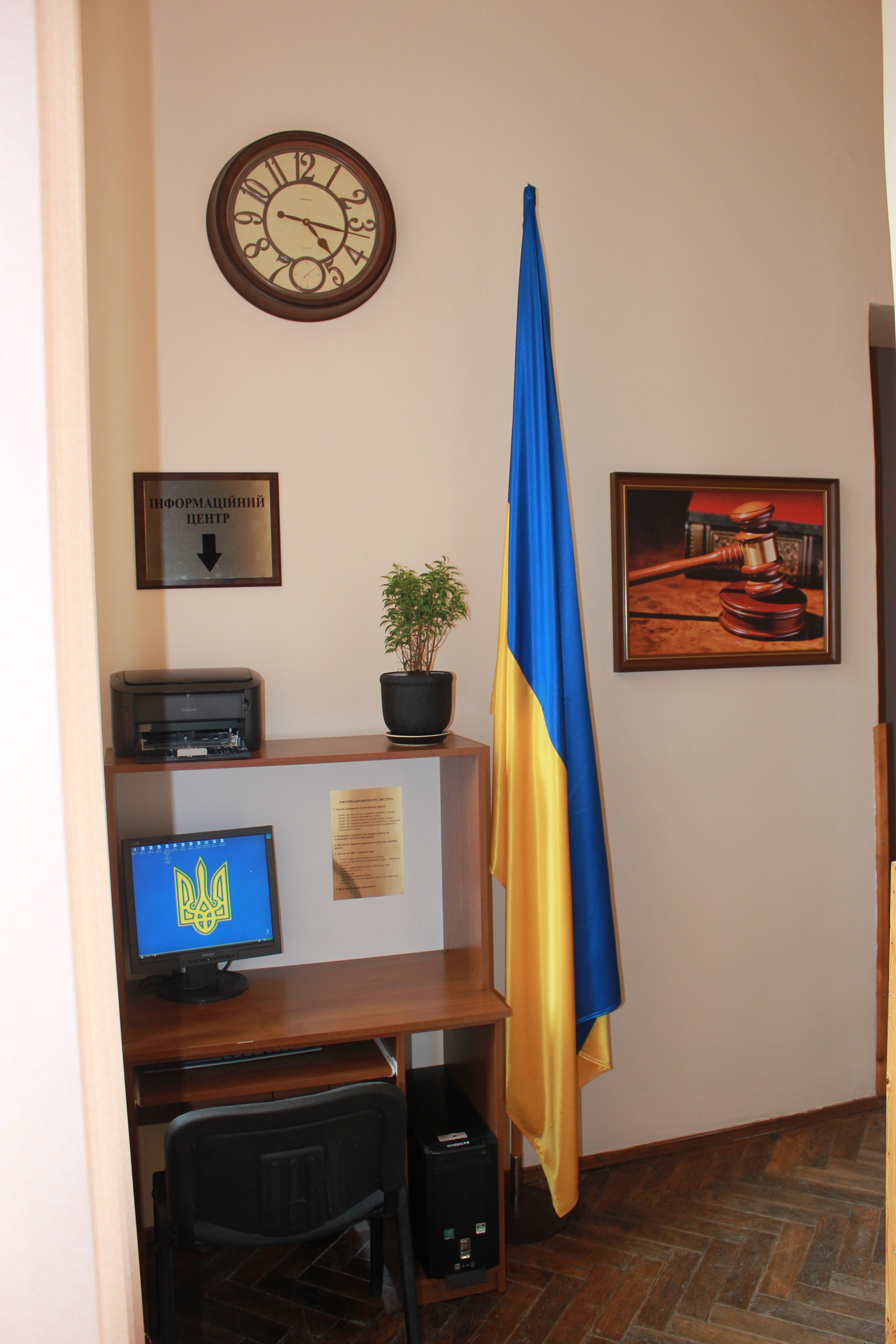 Нещодавно в приміщенні суду запрацював «Інформаційний центр», який надає громадянам необмежений доступ до веб – порталу суду, Єдиного державного реєстру судових рішень.