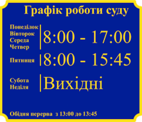 У Золочівському районному суді Львівської області на період дії карантину ( до 31 липня 2020 року) установлено графік роботи: