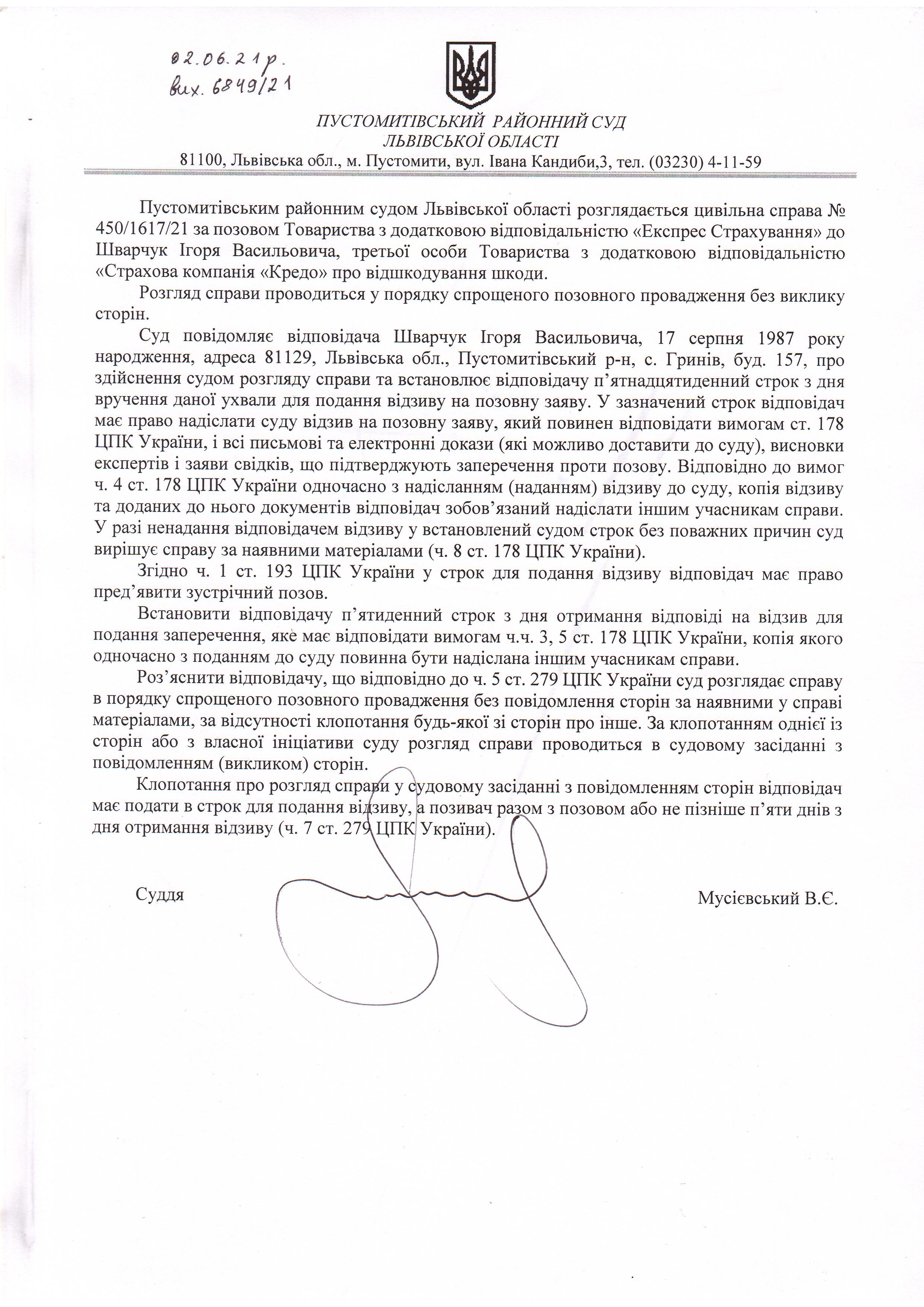 Оголошення про виклик відповідача - Шварчук Ігоря Васильовича