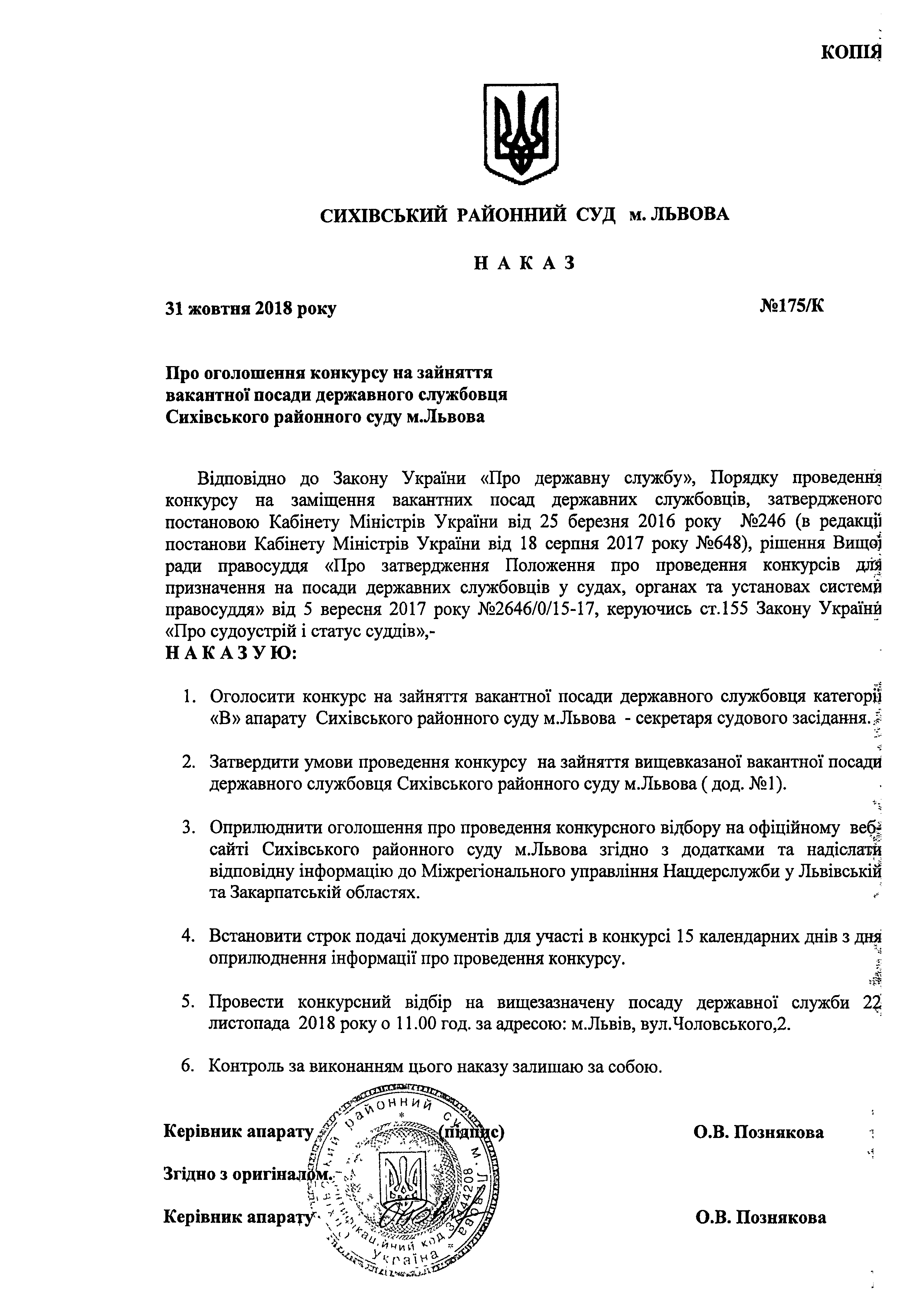 Оголошено конкурс на зайняття вакантної посади державного службовця - секретаря судового засідання