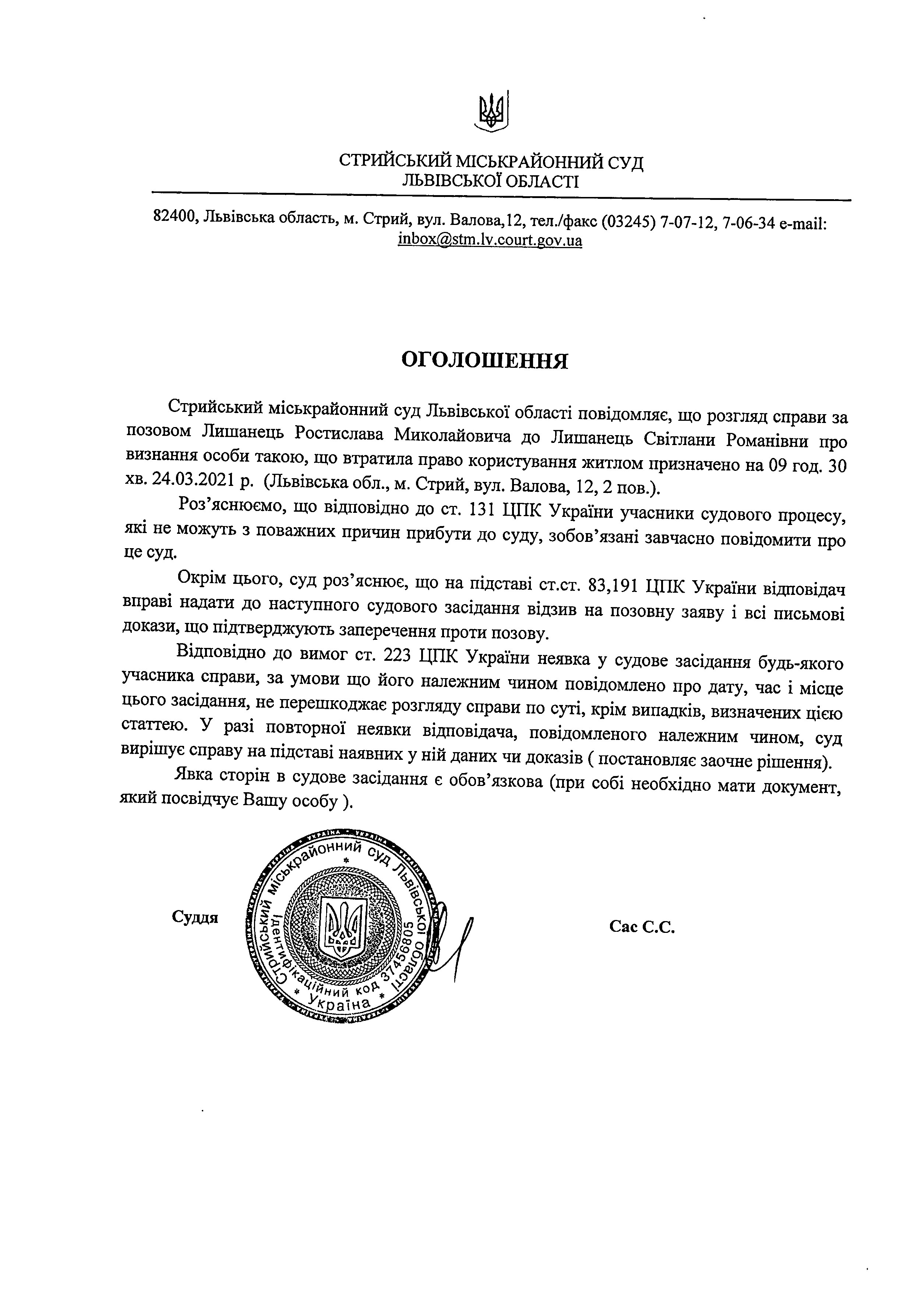 Про виклик Лишанець Р.М.