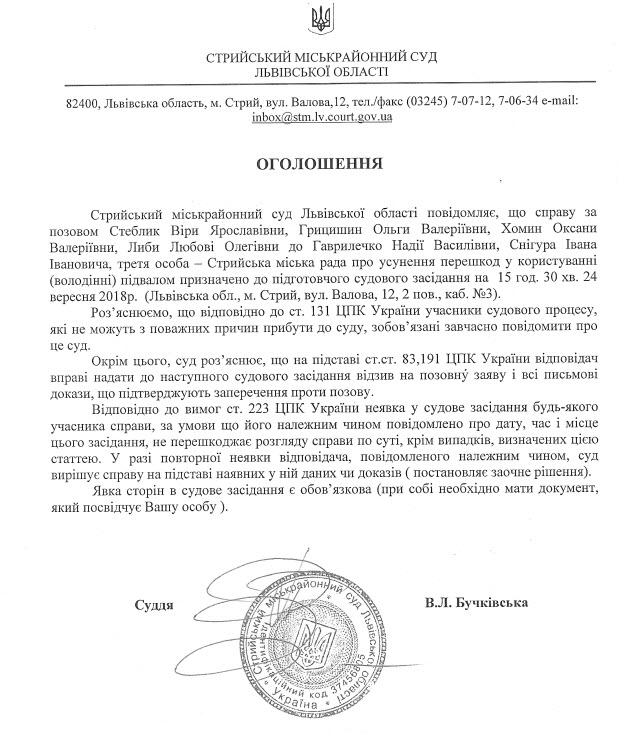 Про виклик Гавриленко Н.В., Снігура І.І.
