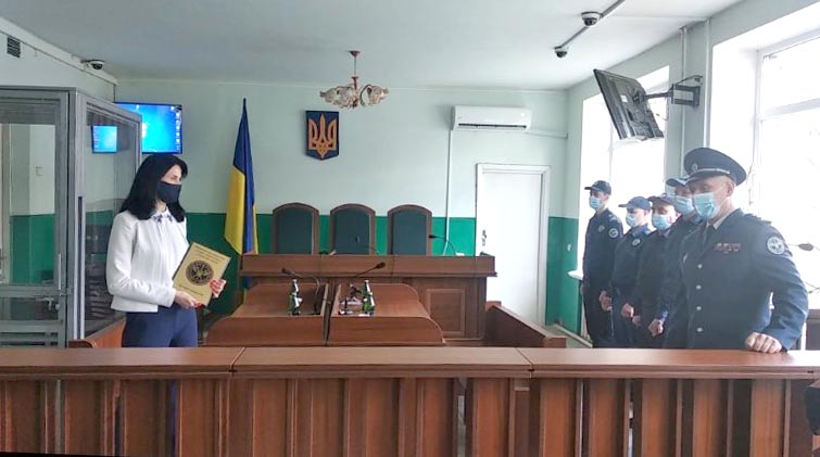 Начальник Територіального управління Служби судової охорони у Львівській області полковник Служби судової охорони Володимир Петрович Семенина особисто представив колективу суду співробітників, які заступили на службу з охорони, забезпечення безпеки та підтримання громадського порядку в суді і провів для них інструктаж.