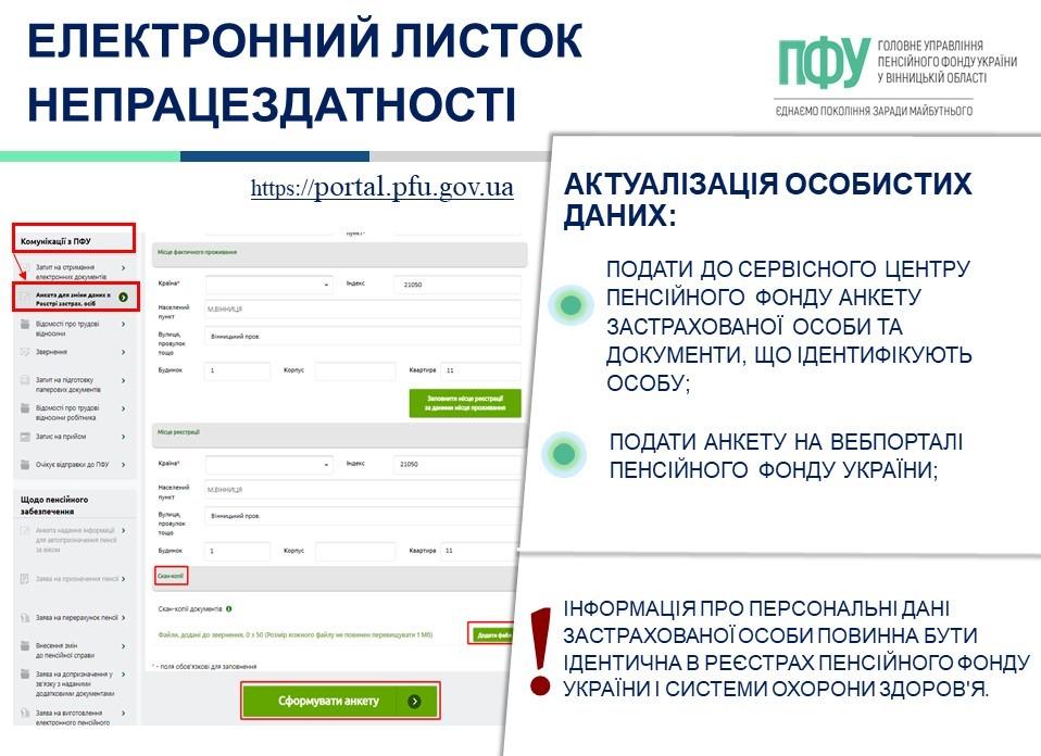 Важливо! Інформація про персональні дані застрахованої особи завжди повинна бути актуальною та ідентичною в реєстрах Пенсійного фонду і в системі охорони здоров’я.
