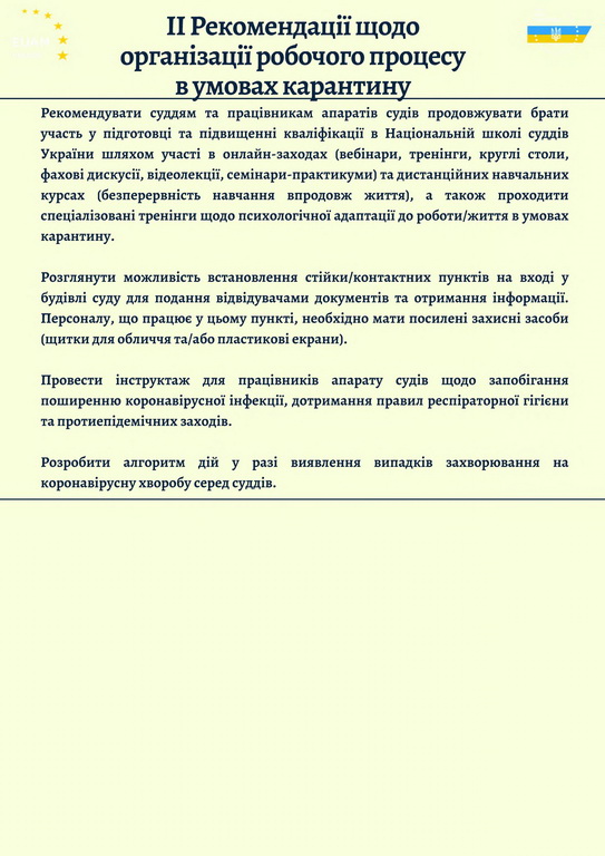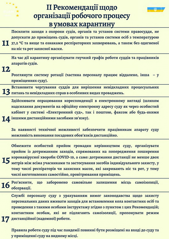 Рекомендації для всіх судів України щодо безпечної роботи в умовах карантину: