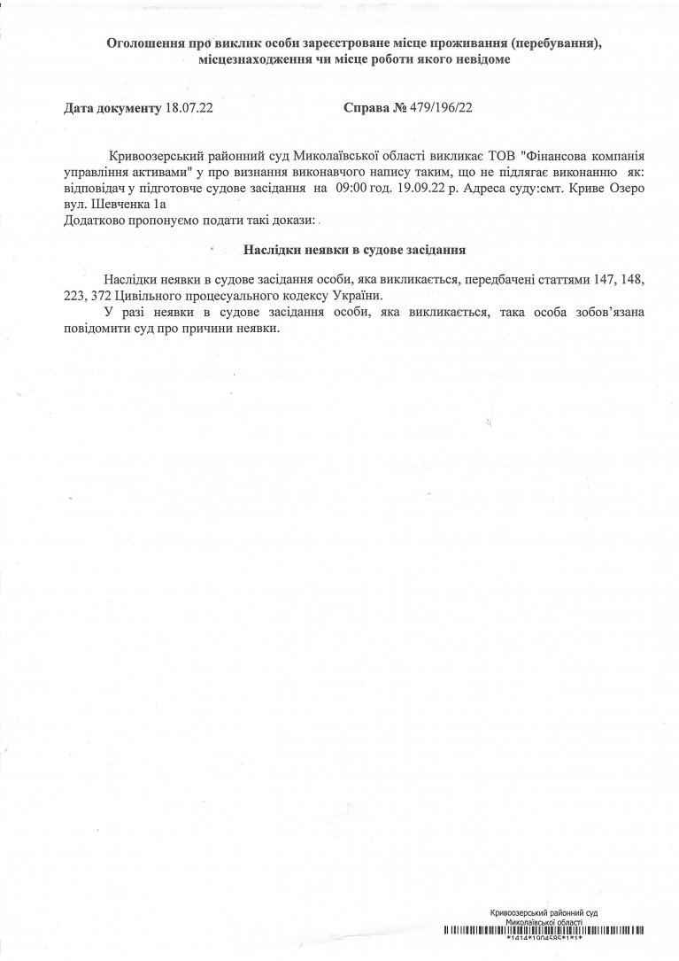 Оголошення про виклик ТОВ "Фінансова компанія управління активами"