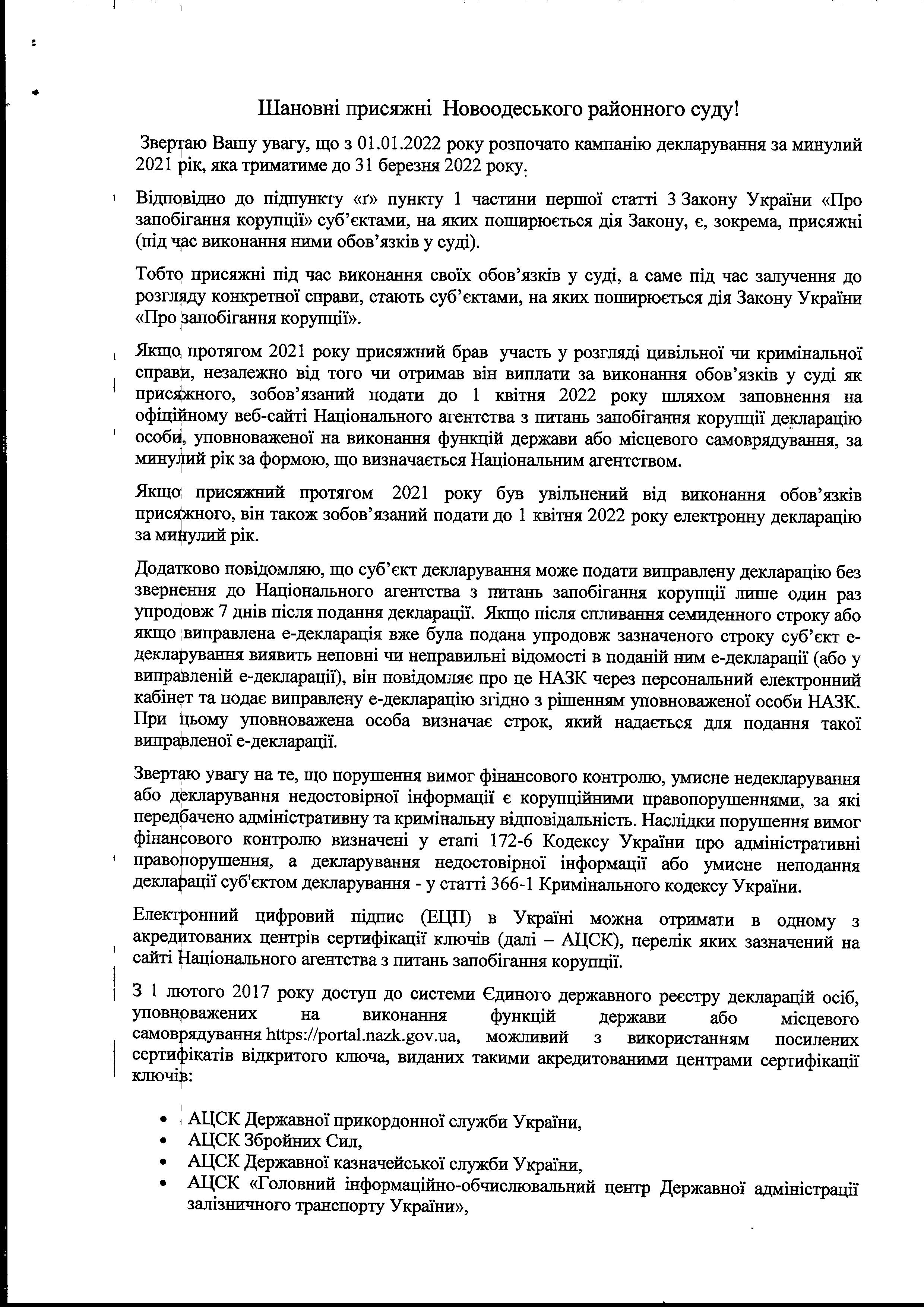 Подання декларації присяжними Новоодеського районного суду