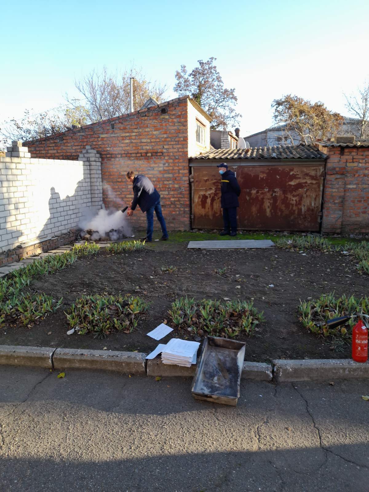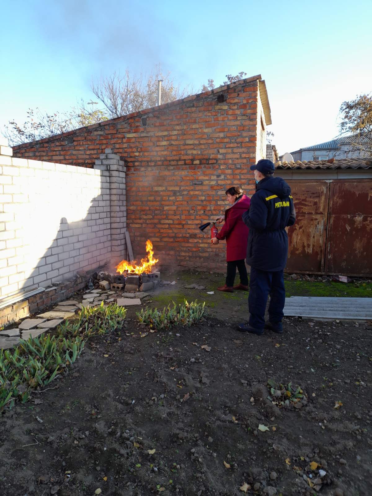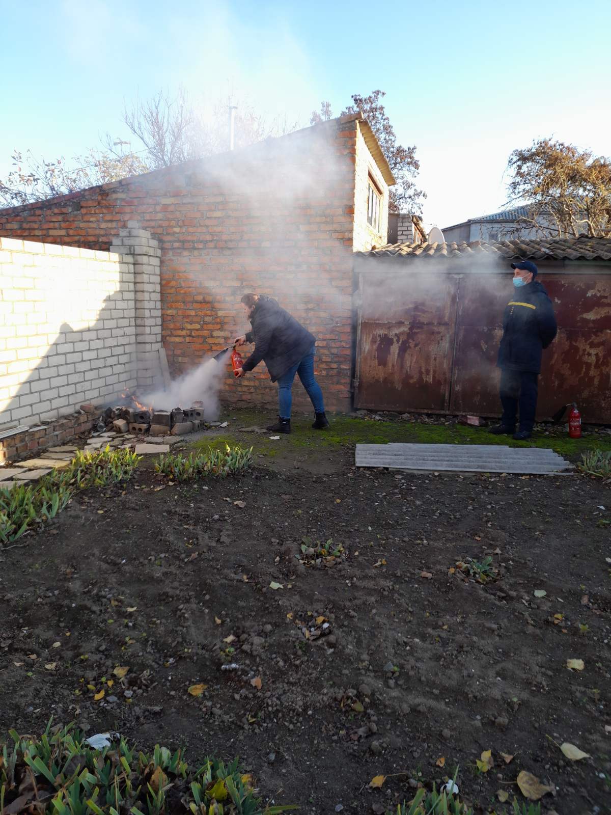 На місці збору на працівників апарату чекала практична частина навчань, де вони могли закріпити отримані знання. Учасники заходу тренувались ліквідовувати умовну пожежу за допомогою вогнегасників.