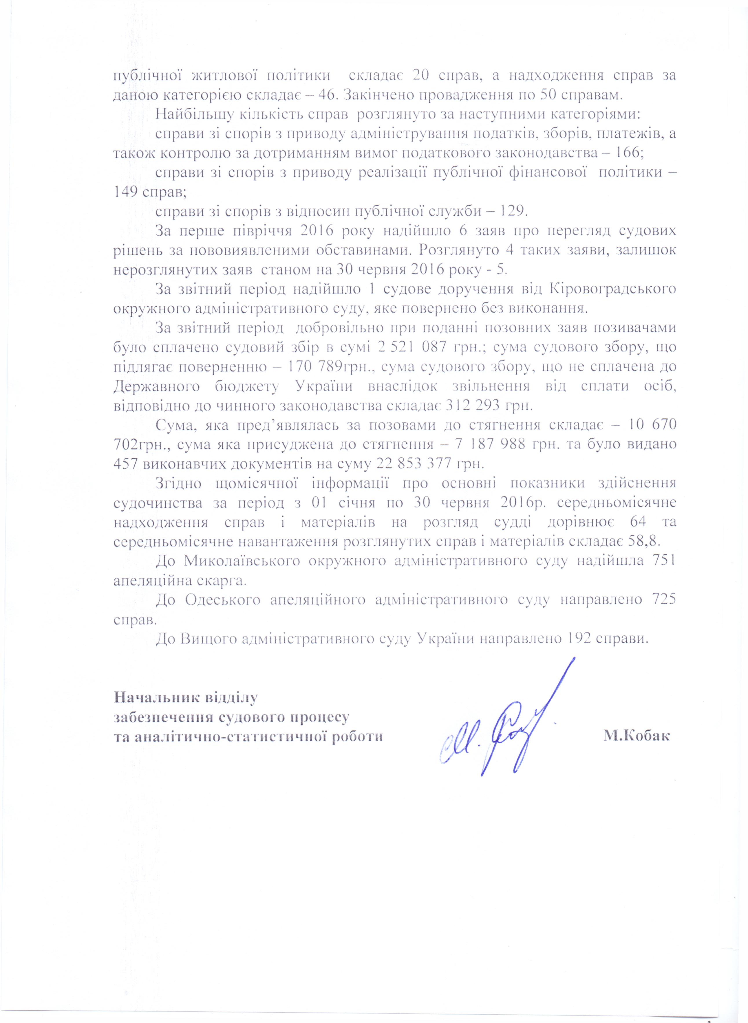 Огляд даних про стан здійснення судочинства Миколаївським окружним адміністративним судом за перше півріччя 2016 року.