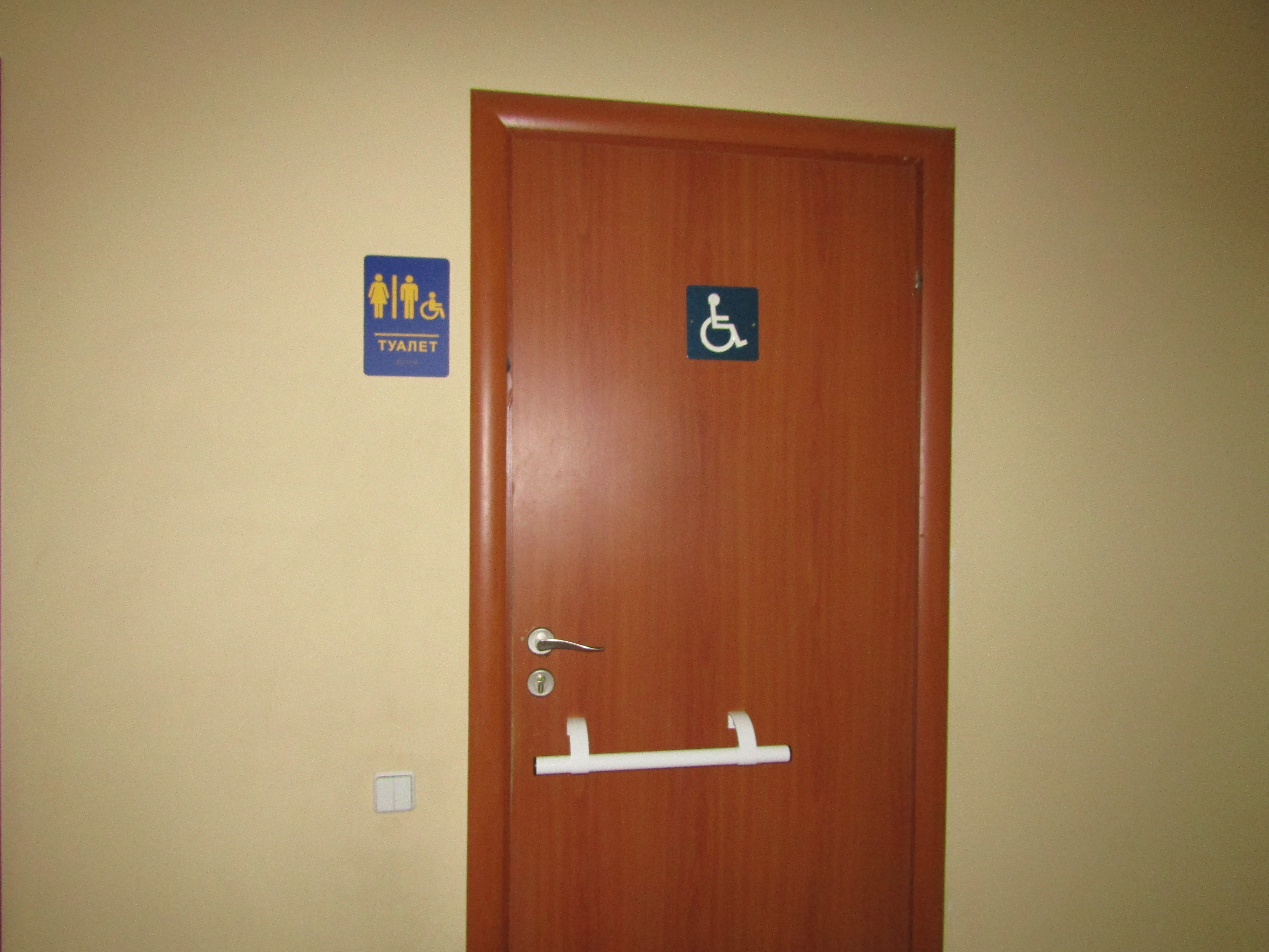 Туалет для осіб з інвалідністю в Апеляційному суді Миколаївської області відповідає стандартам. Санвузол має певні розміри, поручні і додаткове обладнання, яке допомагає займатися особистою гігієною, не вдаючись до допомоги сторонніх осіб.