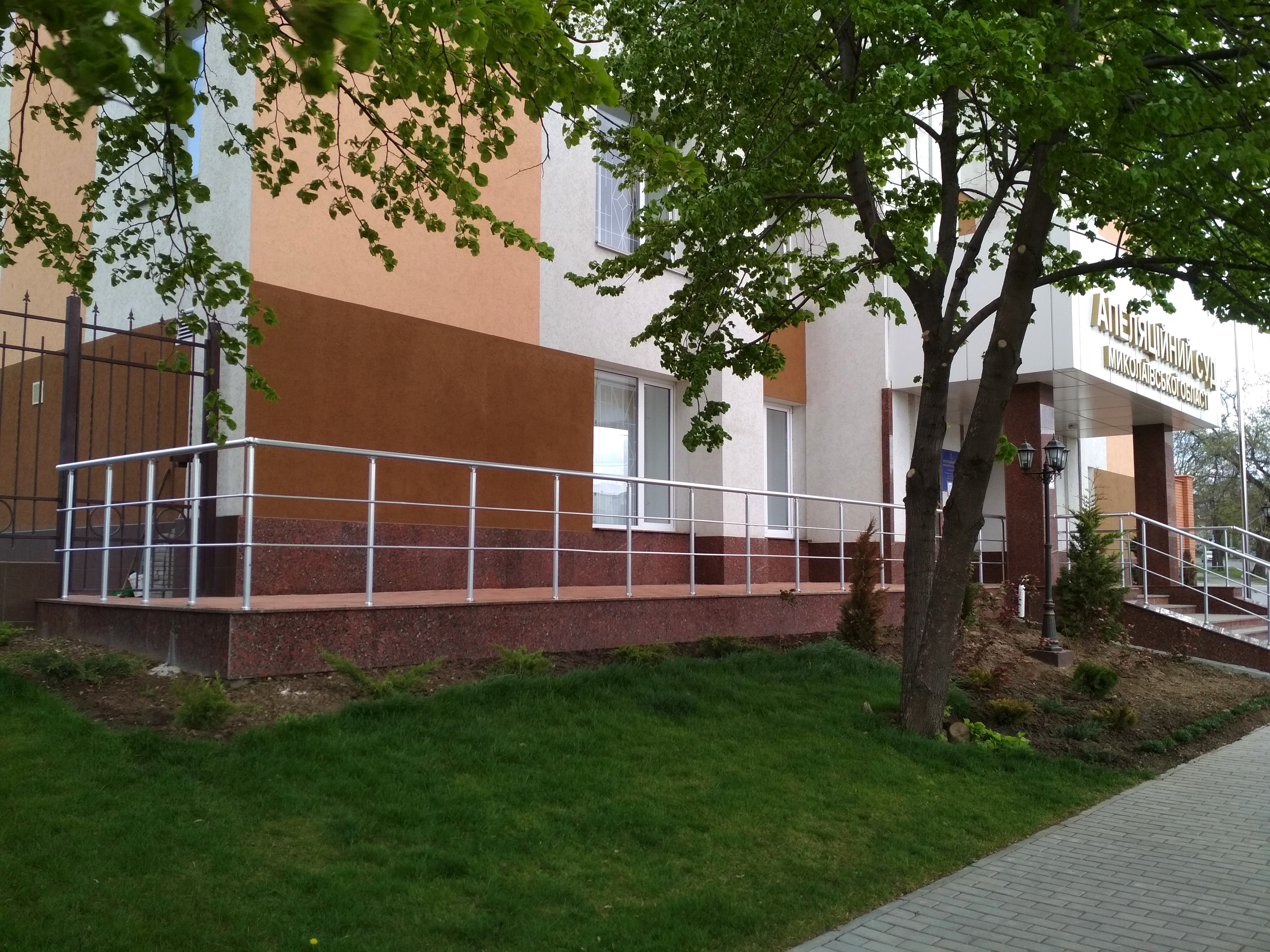 Під пандусом мається на увазі поверхня, призначена для переміщення людей з обмеженими здібностями. До головного входу будівлі Апеляційного суду Миколаївської області можна дістатися з внутрішнього двору суду.
