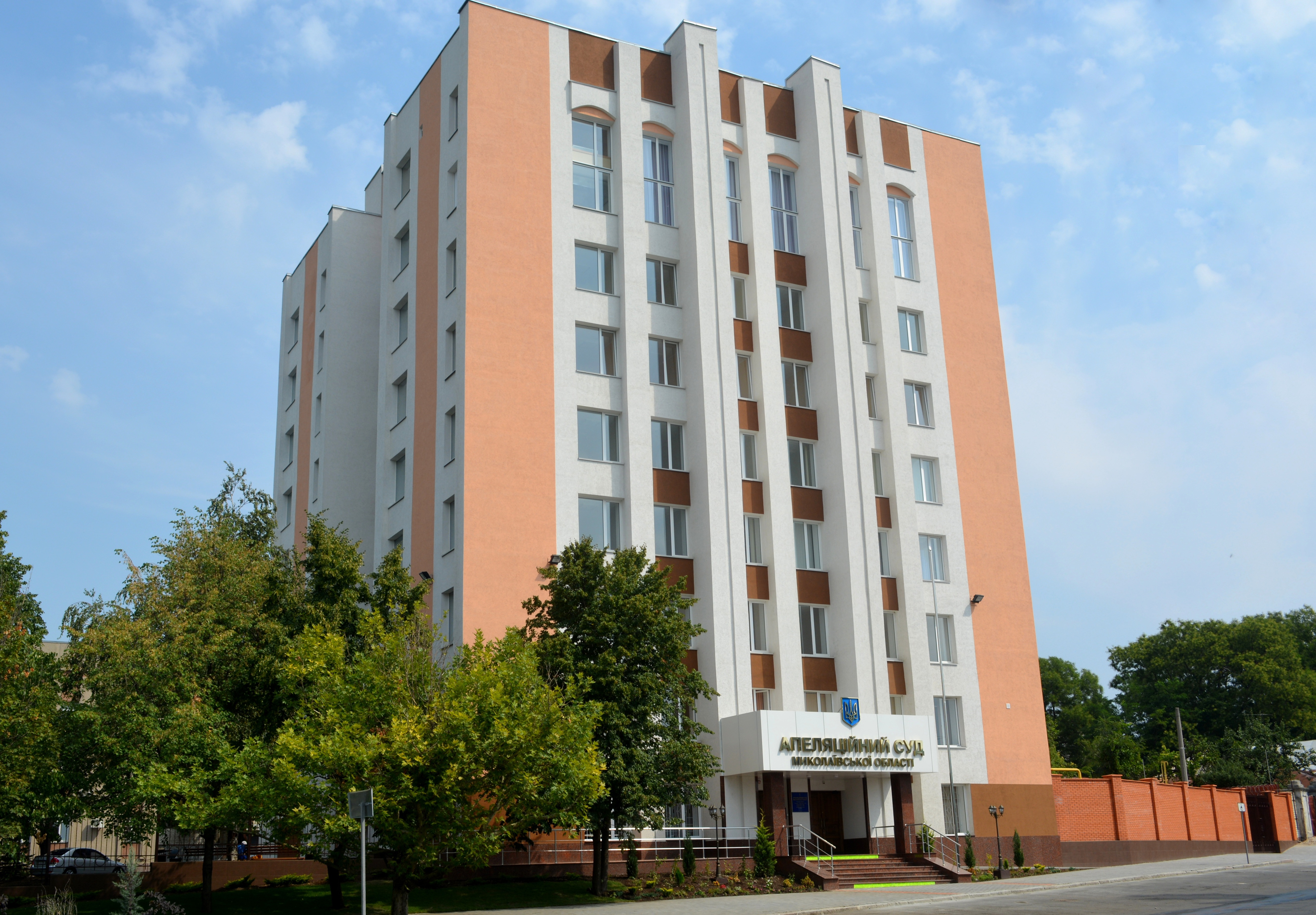 Табличка залу судових засідань у Апеляційному суді Миколаївської області.