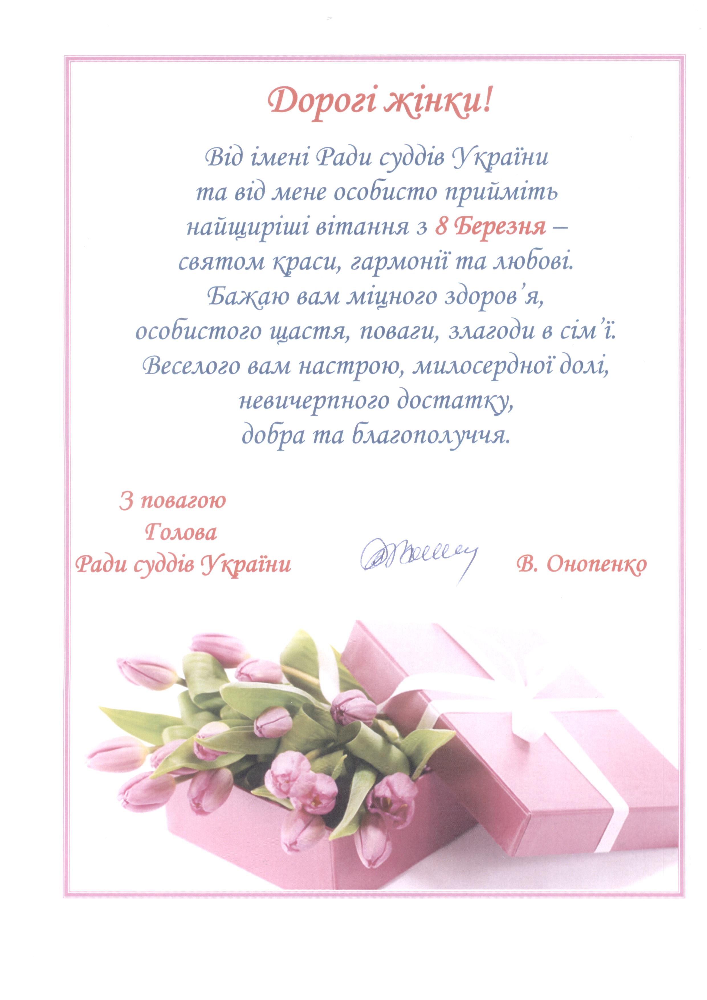 Привітання голови Ради суддів України з Міжнародним жіночим днем