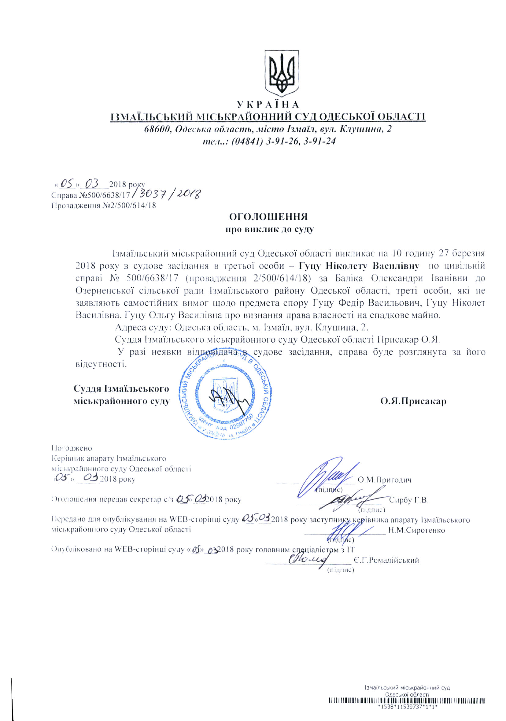 УВАГА!!! Оголошення про виклик до суду!!!