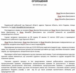 Феде Василь Дмитрович, Феде Іван Дмитрович та Феде Михайло Дмитрович повідомляються, що в судовому засіданні вони беруть участь в якості відповідачів.