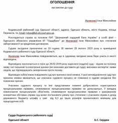 Судове засідання призначене на 10 годину 30 хвилин 28 лютого 2019 року в приміщенні Кодимського районного суду Одеської області.