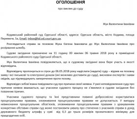 Судове засідання призначене на 11 годину 00 хвилин 06 травня 2018 року в приміщенні Кодимського районного суду Одеської області.
