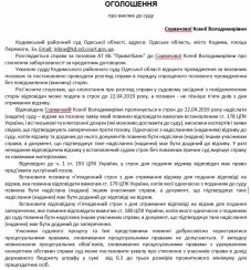 Ухвалою судді Кодимського районного суду Одеської області відкрито провадження за вказаним позовом та постановлено проводити розгляд справи в порядку спрощеного позовного провадження без повідомлення (виклику) сторін.