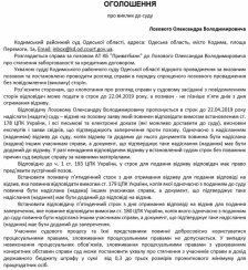 Ухвалою судді Кодимського районного суду Одеської області відкрито провадження за вказаним позовом та постановлено проводити розгляд справи в порядку спрощеного позовного провадження без повідомлення (виклику) сторін.