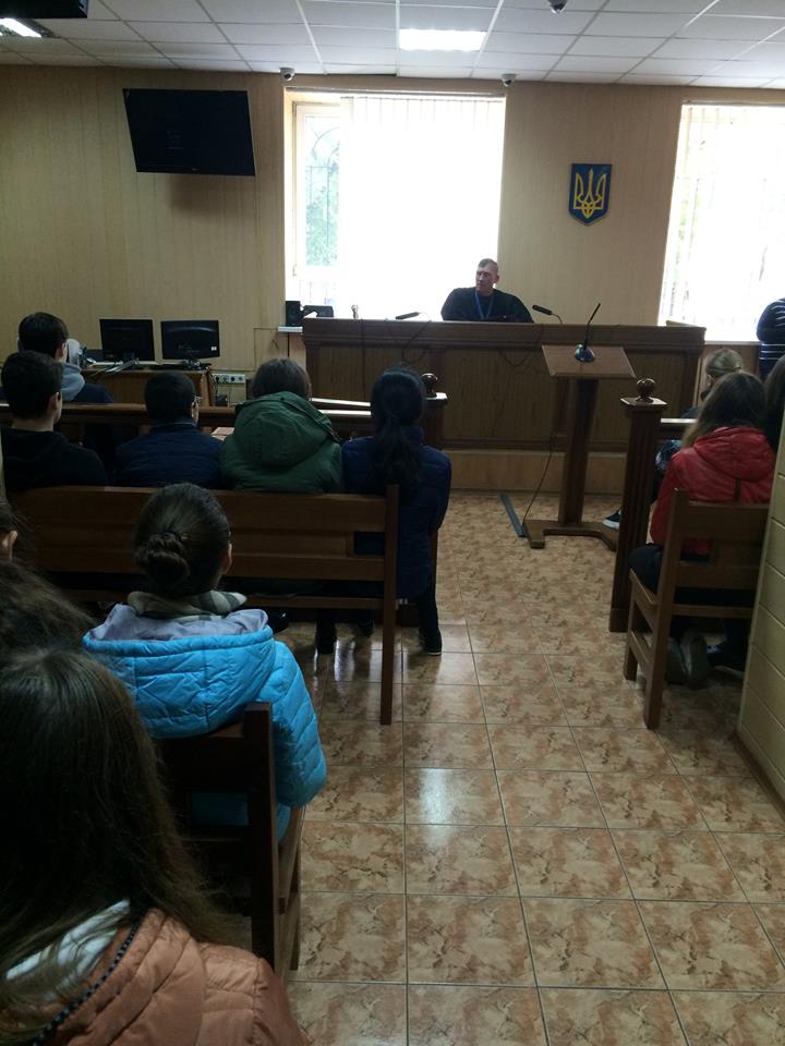Відвідали учні кримінальну, адміністративну та цивільну канцелярії, де дізналися про реєстрацію та рух документів, що надходять до суду. Учні побачили також інформаційний центр суду, куди громадяни звертаються стосовно розгляду справ у суді.