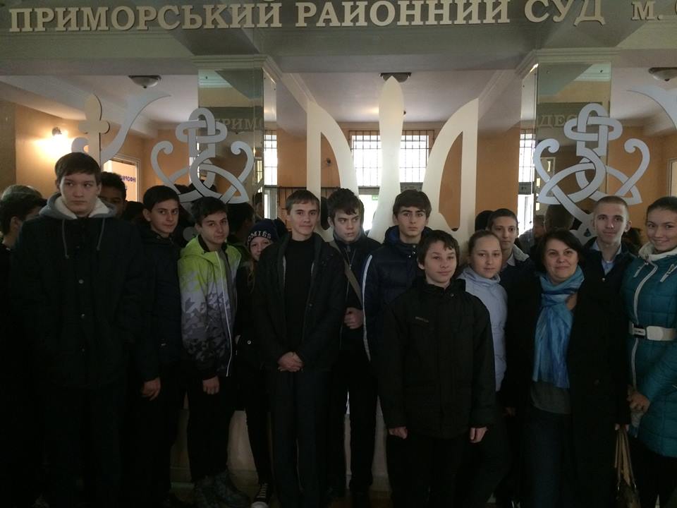 Приморського районного суду м.Одеси та запрошено їх до зали судових засідань. Учнів ознайомлено з Правилами поведінки в суді, історичною довідкою суду, ознайомлено із структурою суду та з роботою працівників апарату суду і суддів. Наведено приклади найбільш резонансних справ за участю неповнолітніх, які розглядалися в Приморському районному суді міста Одеси, а також покарання, які були призначені неповнолітнім особам за скоєння злочинів.