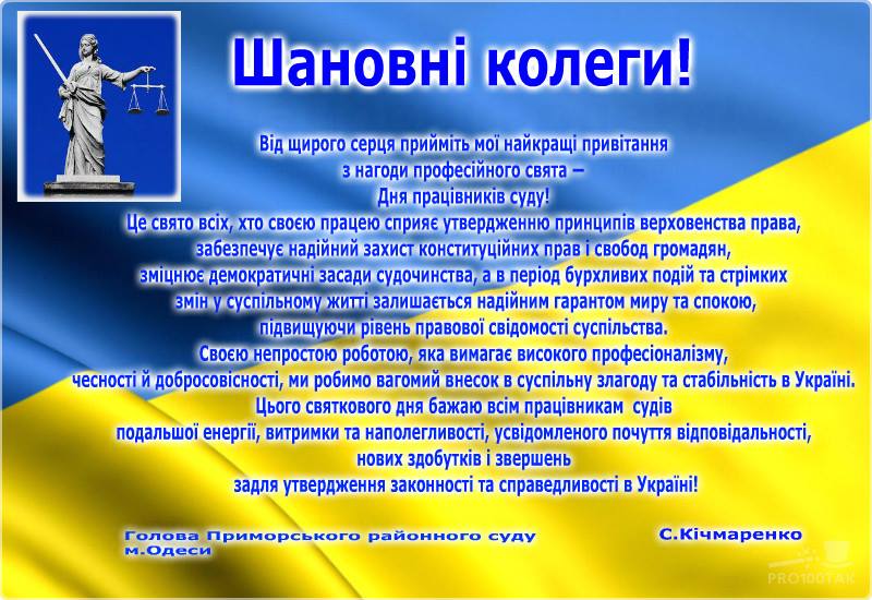 Привітання з нагоди професійного свята — Дня працівників суду!