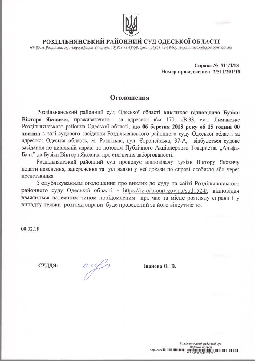 Оголошення до суду 08.02.2018