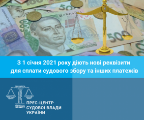 Нагадуємо, що 1 січня 2021 року діють нові реквізити для сплати судового збору та інших платежів.