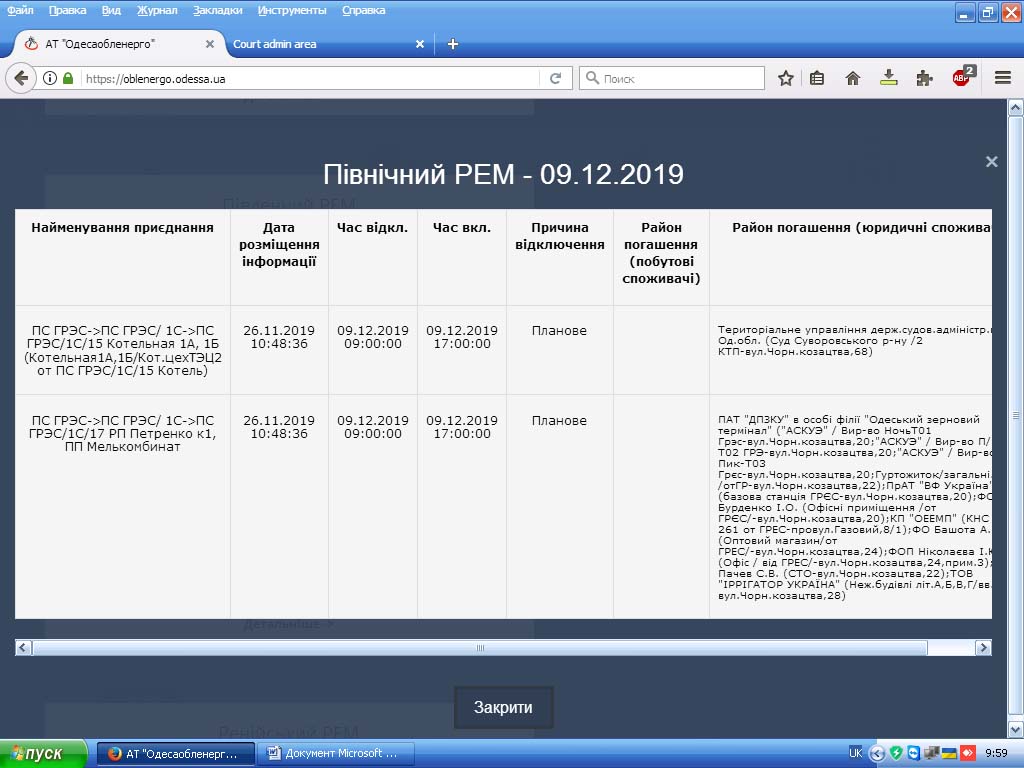 Доводими до Вашого відома, що 09 грудня 2019 року з 09.00 до 17.00 у зв'язку із проведенням ремонтних робіт Північним РЕМ у Суворовському районному суді м.Одеси буде відключено електропостачання. У зв'язку з цим 09 грудня 2019 року з 09.00 до 17.00 Суворовський районний суд м.Одеси не буде здійснювати правосуддя.