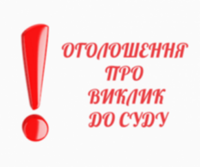 ОГОЛОШЕННЯ ПРО ВИКЛИК ДО СУДУ