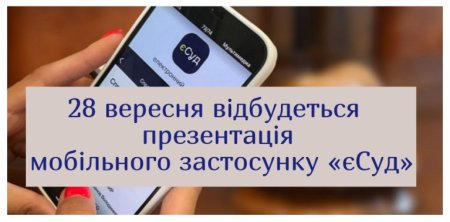 28 вересня 2021 року об 11.00 на базі Державної судової адміністрації України відбудеться презентація мобільного застосунку «єСуд».