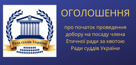 На виконання вимог Закону України №1635-IX, рішенням від 21 вересня 2021 року №46 Рада суддів України оголошує про початок проведення добору на посаду члена Етичної ради за квотою РСУ.