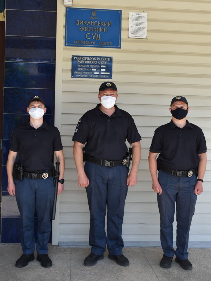 Сьогодні, 11 червня 2020 року, Диканський районний суд Полтавської області взято під охорону співробітниками Територіального управління Служби судової охорони у Полтавській області, які дбатимуть про безпеку відвідувачів суду, учасників судових процесів та працівників районного суду.