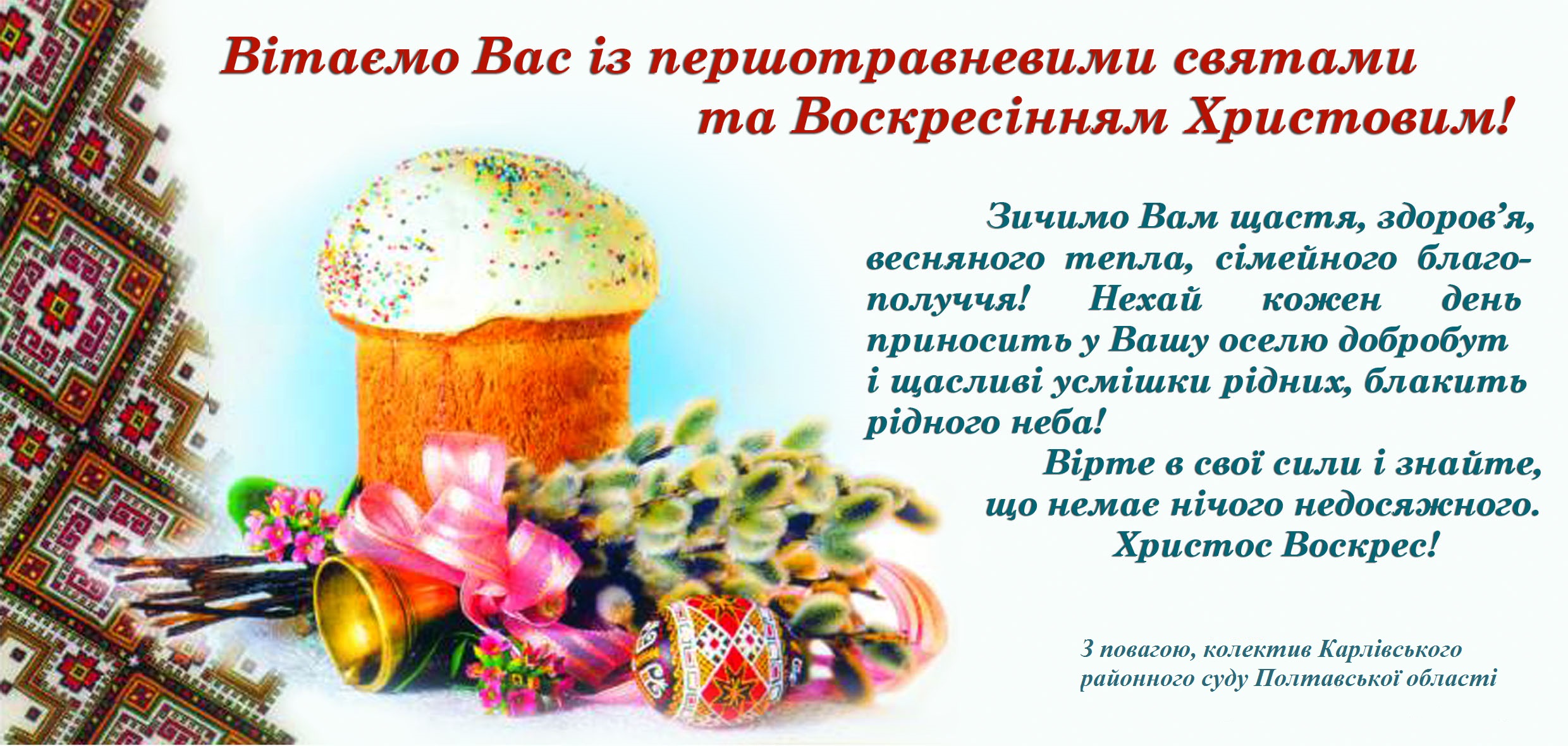 Привітання з першотравневими святами та Воскресінням Христовим!