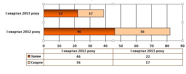 Згідно облікових даних журналу особистого прийому громадян протягом І півріччя 2013 року було розглянуто 11 звернень. У порівнянні з аналогічним періодом минулого року цей показник становить 33,3 %, оскільки в І півріччі 2012 року розглянуто 33 звернення.