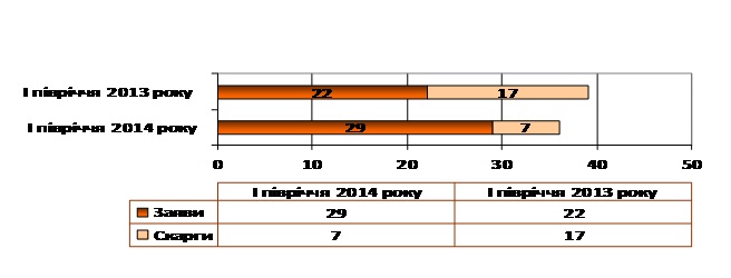 Протягом І піріччя 2014 року до суду надійшло 29 заяв та 7 скарг.