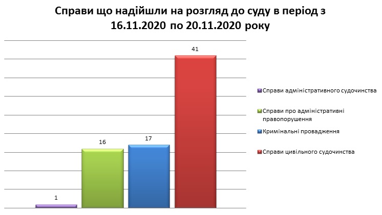 В період з 16.11.2020 по 20.11.2020 до Ленінського районного суду м.Полтави на розгляд надійшло: