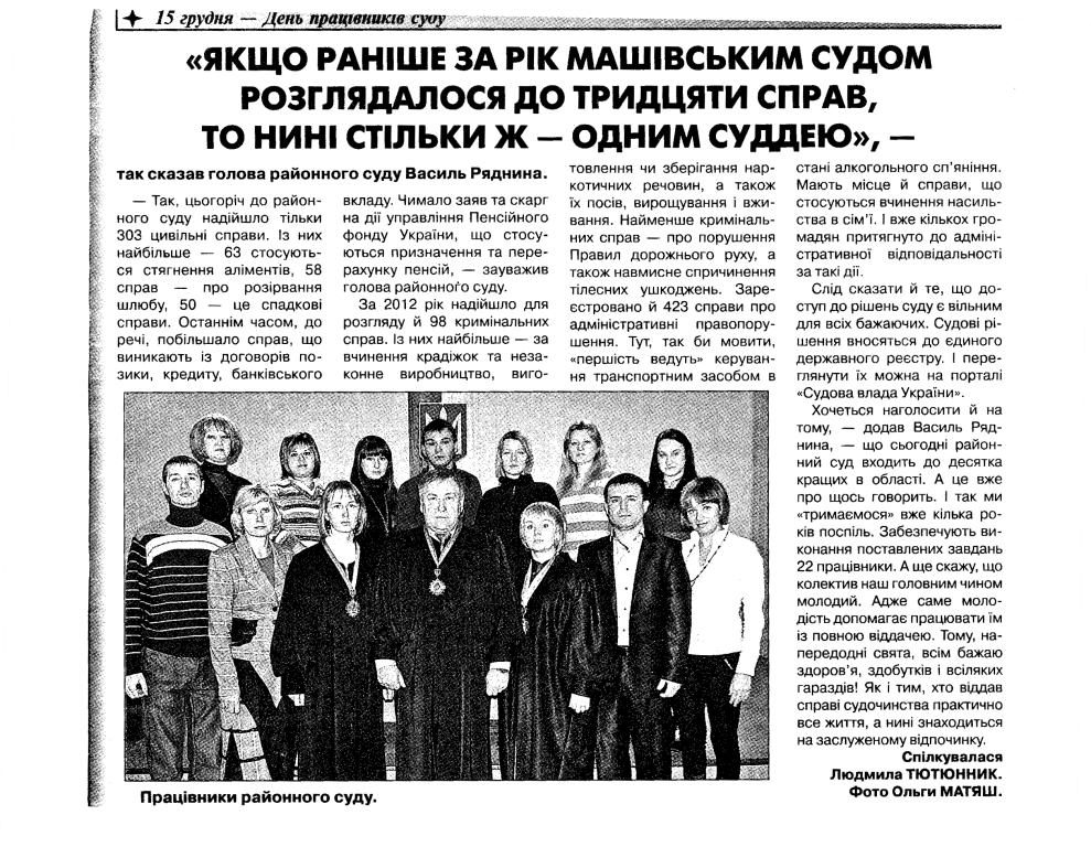 Публікація в районній газеті "Промінь" від 15 грудня 2012 року № 99 - 100