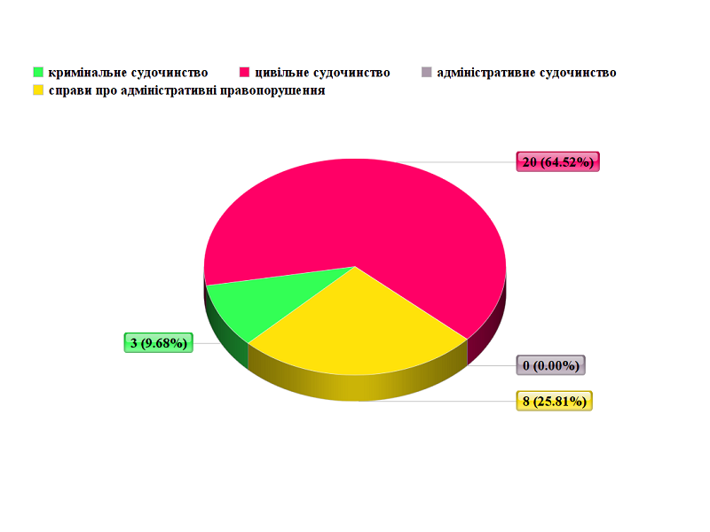 Машівським районним судом Полтавської області протягом зазначеного періоду розглянуто 31 справи та матеріалів.