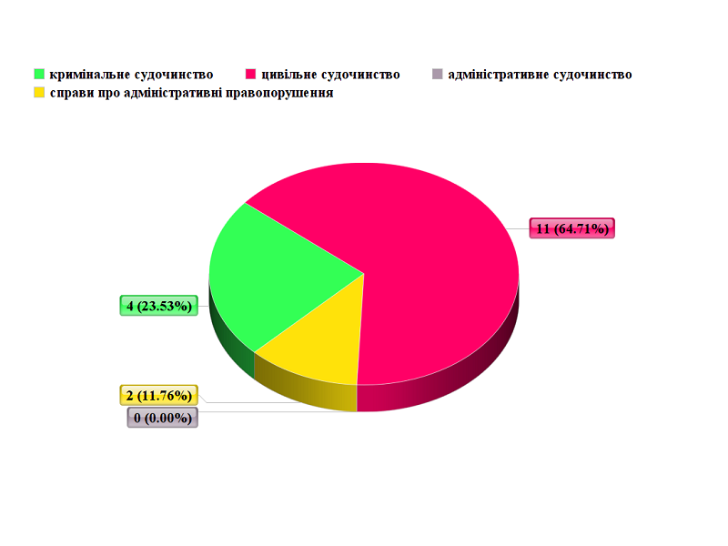 - справи про адміністративні правопорушення – 13.