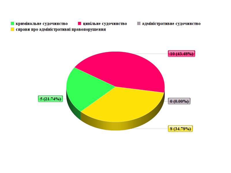 У період з 26 по 30 квітня 2021 року до суду надійшло 23 справи (матеріалів) різних категорій.