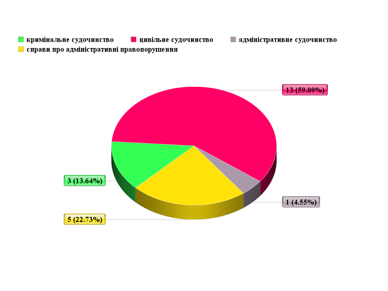 - цивільні справи окремого провадження, заяви окремого провадження – 1;