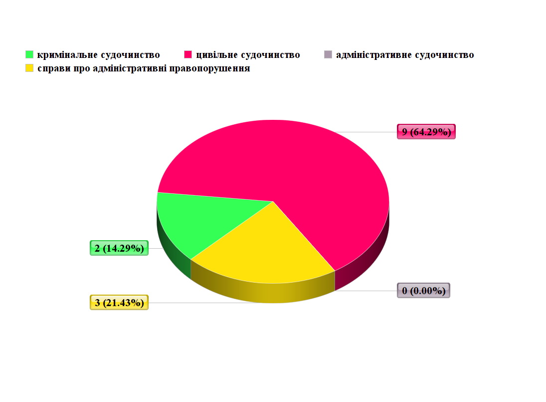 - клопотання (подання), пов'язані із виконанням судових рішень у кримінальному провадженні (заяви про видачу дублікатів виконавчих листів, подання державних виконавців тощо) - 5;