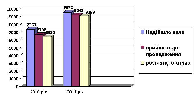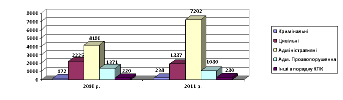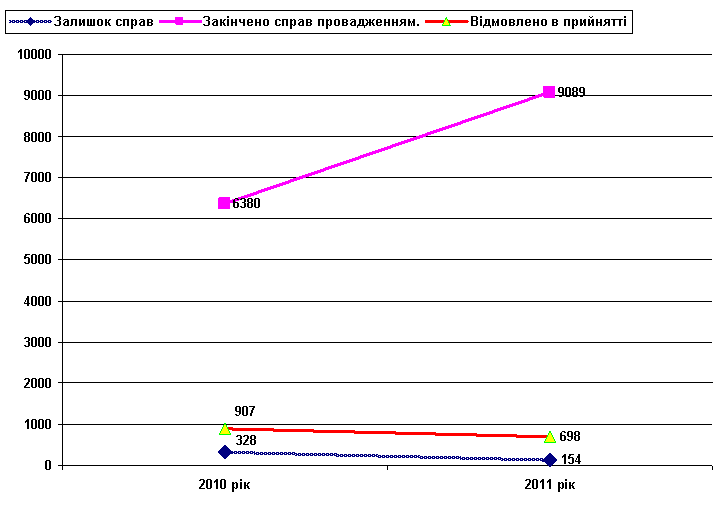 Рисунок 2. Діаграма розгляду справ судом на протязі 2010 – 2011 року (закінчених провадженням).