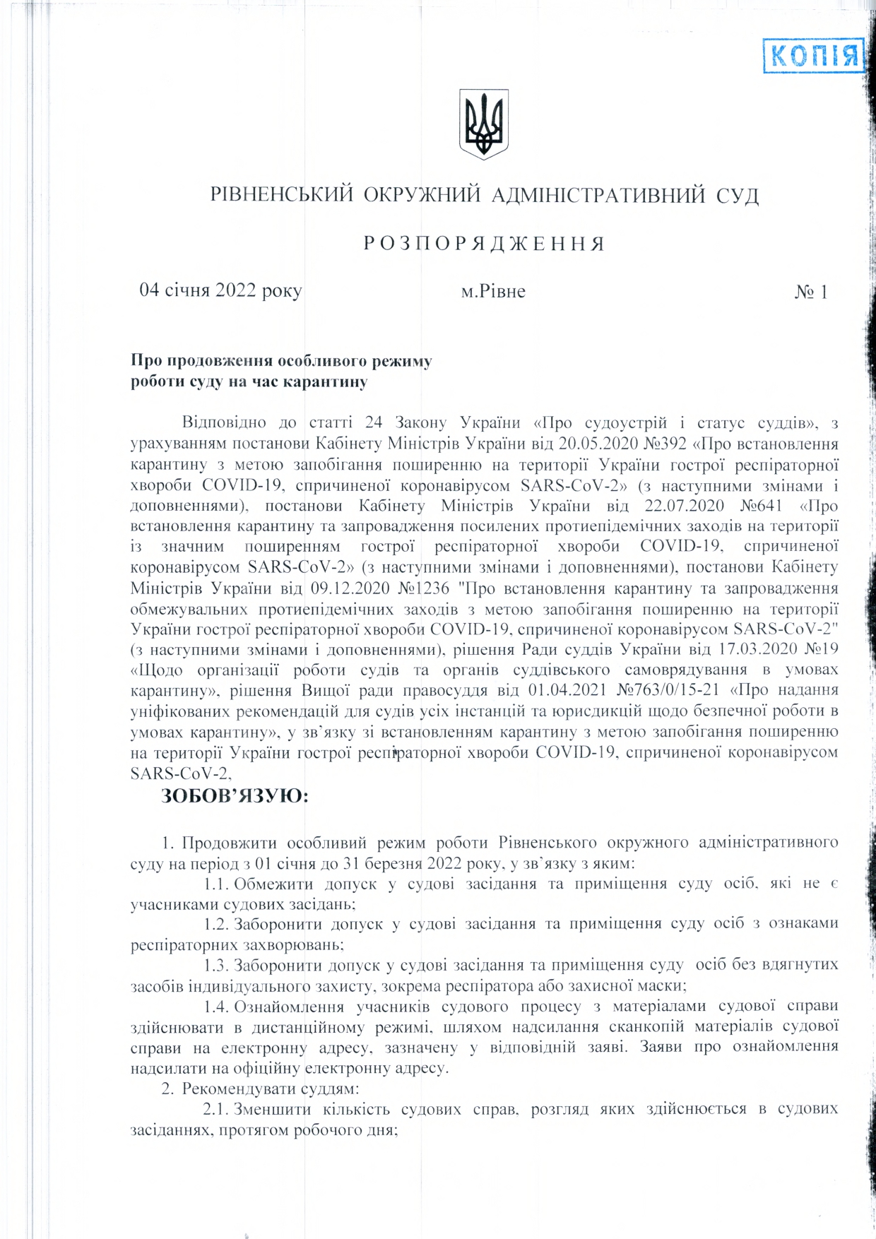 Про продовження особливого режиму роботи суду на час карантину