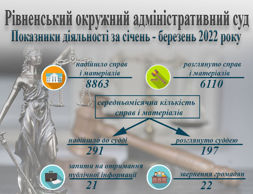 Показники діяльності суду за січень - березень 2022 року.