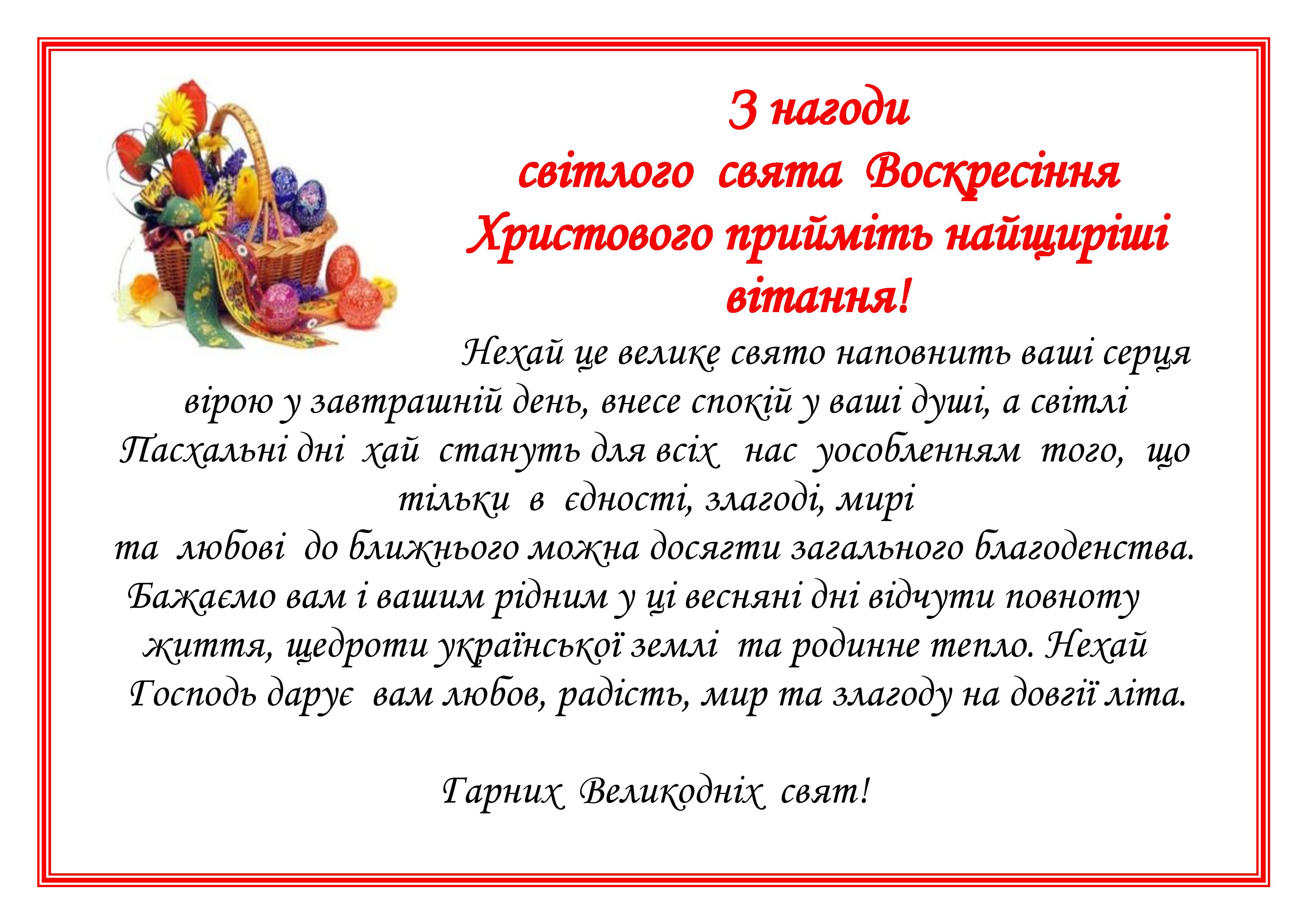 З нагоди світлого свята Воскресіння Христового прийміть найщиріші вітання!