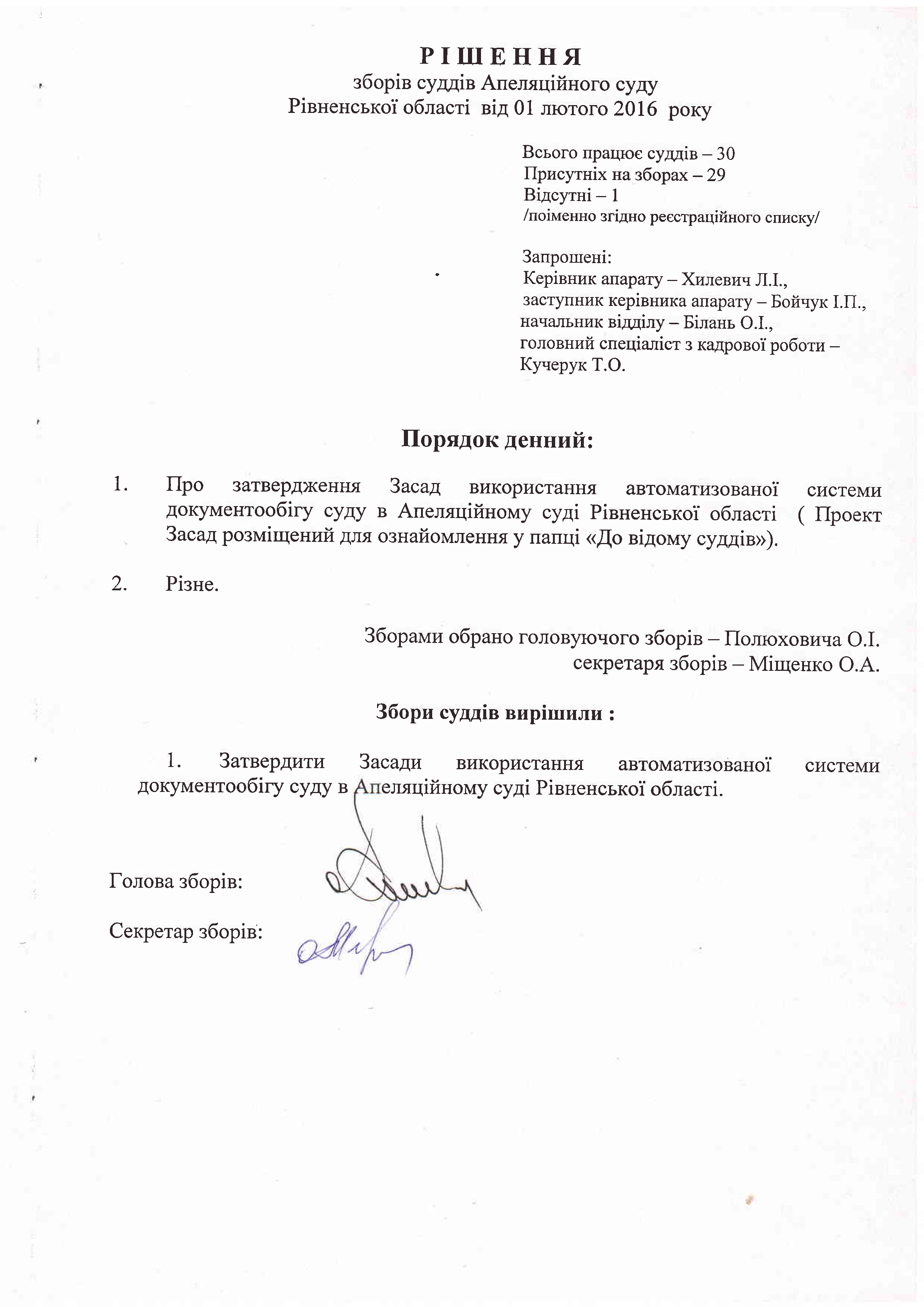 Рішення зборів суддів від 01.02.2016 року