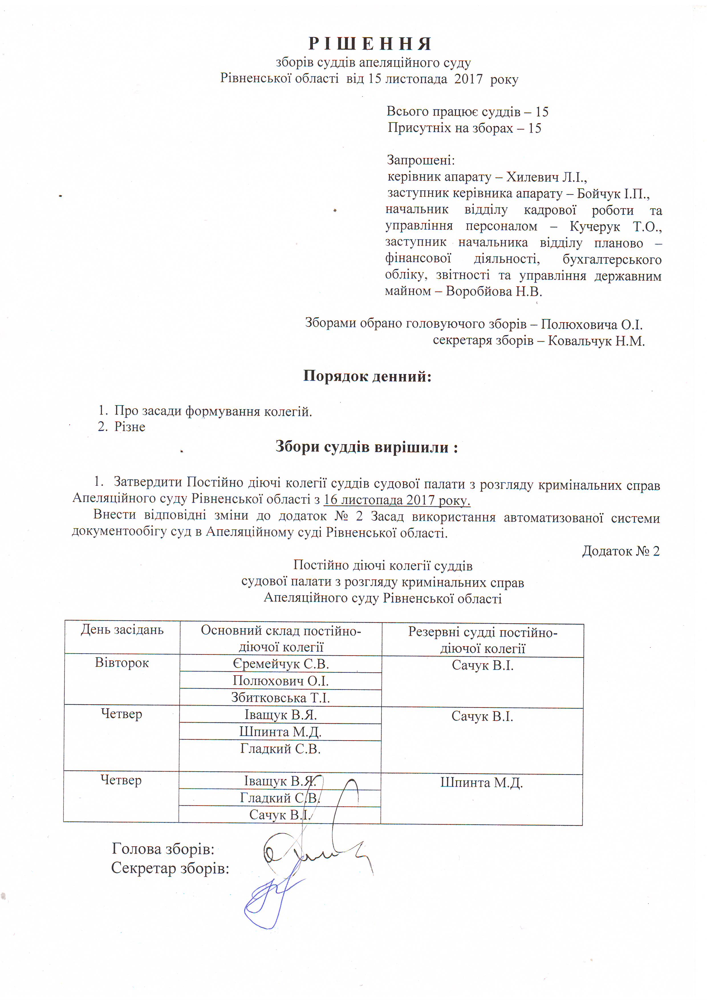 Рішення зборів суддів від 15.11.2017 року